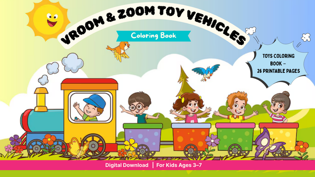 Printable Toy Vehicles Coloring Book – 26 Fun Pages for Kids